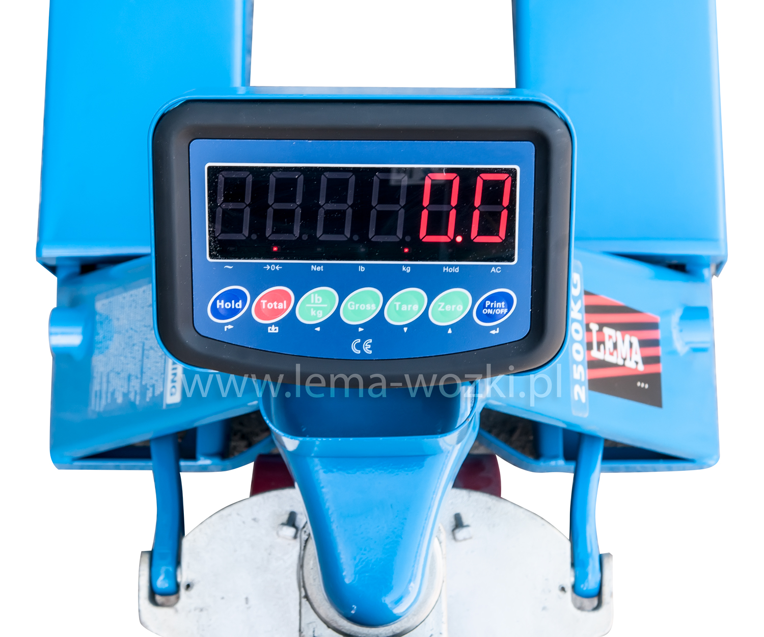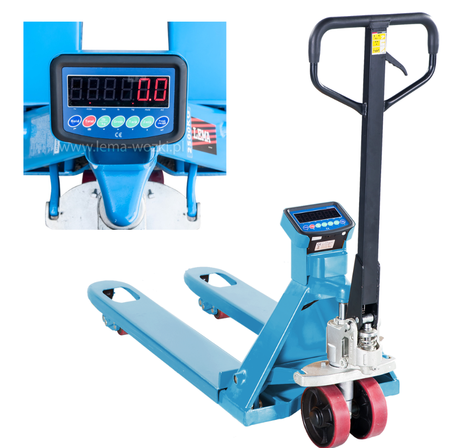 Prezentowany wózek ręczny paletowy ACWX 25 LEMA (udźwig 2500 kg; widły 1150 mm) łączy w sobie funkcjonalność wózka paletowego oraz profesjonalnej wagi. Maksymalny udźwig urządzenia wynosi 2500 kg. Waga oferowanego modelu zapewnia dokładność ważenia na poziomie +/- 0,1%, podziałka wynosi 0,5 kg. Wózek ręczny paletowy ACWX 25 LEMA (udźwig 2500 kg; widły 1150 mm) jest bardzo zwrotny, trwały oraz odpowiada wymogom dyrektywy europejskiej 2006/42/WE. Charakterystyczną funkcją urządzenia jest tarowanie automatyczne i ręczne wprowadzanie tary. Ponadto, urządzenie umożliwia ustawienie zera. Zachęcamy do zapoznania się ze wszystkimi danymi technicznymi wózka ręcznego paletowego ACWX 25 LEMA (udźwig 2500 kg; widły 1150 mm).